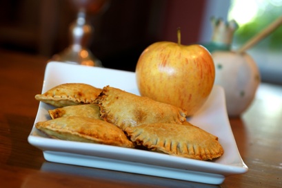 Now just add a dollop or so of the filling to one side of the dough rounds. Then fold over the other half of the dough to make a “half-round” with the filling in the middle. Seal the overlapping edges with a pastry wheel or the tines of a fork. Lightly brush the tops with a beaten egg and then bake on either a lightly greased cookie sheet or on parchment paper (my preferred method) on a cookie sheet in a 375-degree oven until golden, about 30-45 minutes. But keep a close eye on them; you do not want these to burn.